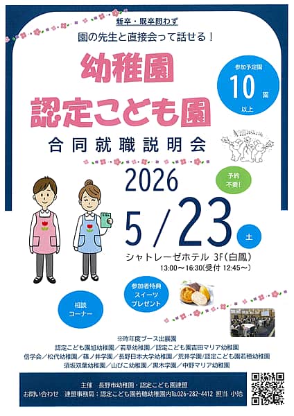 長野市幼稚園・認定こども園連盟の加盟園を中心とした北信地区の幼稚園・認定こども園による保育教諭向け「合同就職説明会」